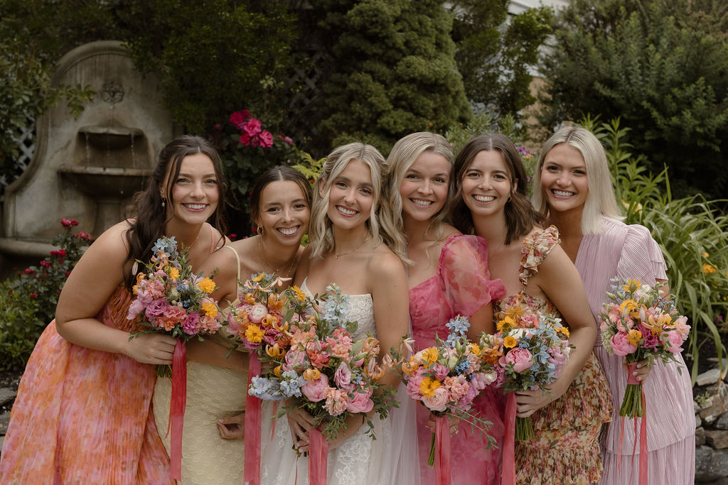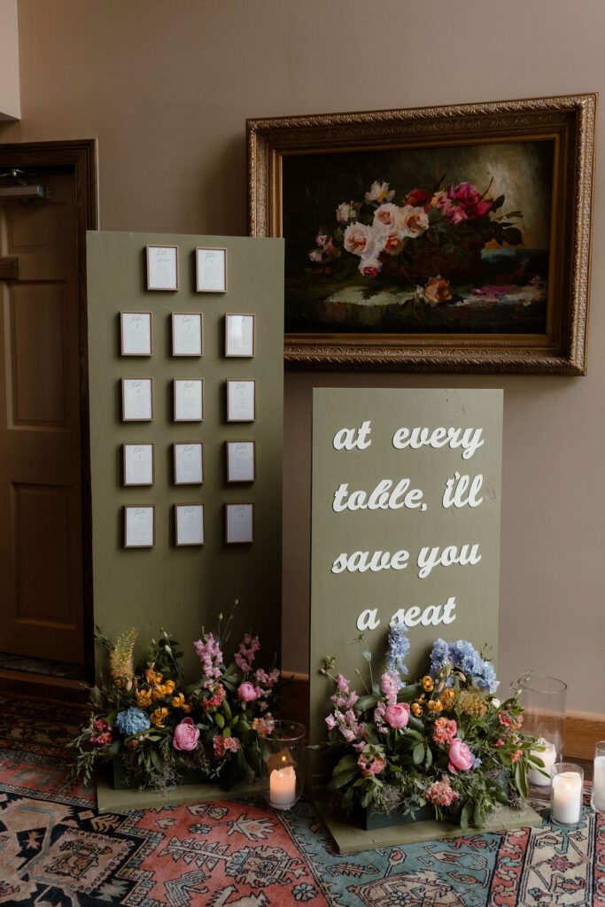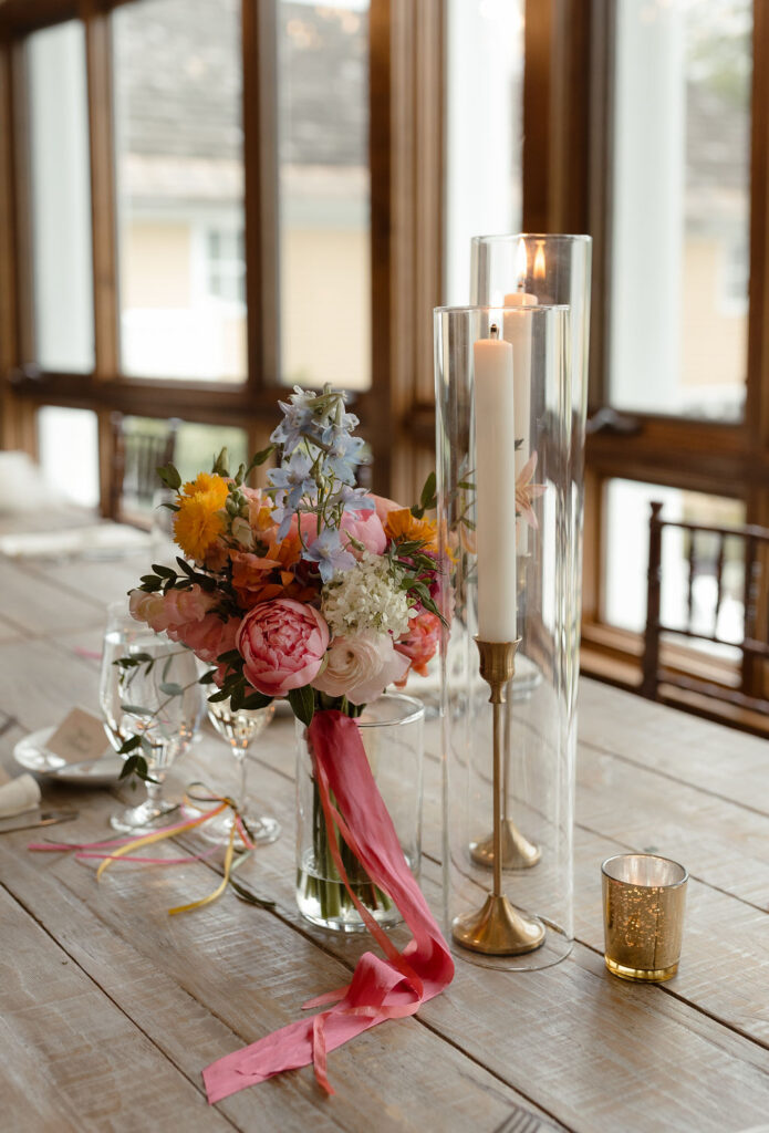 Kalli + Harry’s day was full of color and personality — from their vibrant florals to the hand-painted signage and thoughtful tablescapes. While I was with the inside capturing details, Kirsten was outside with wedding guests capturing photos of guests during cocktail hour.