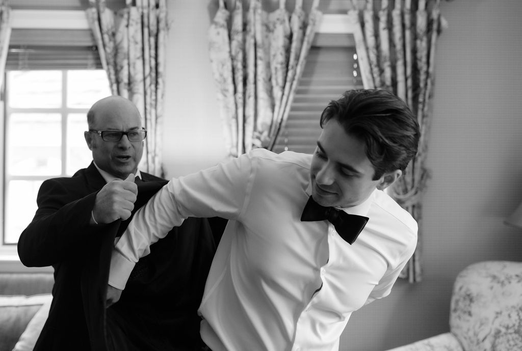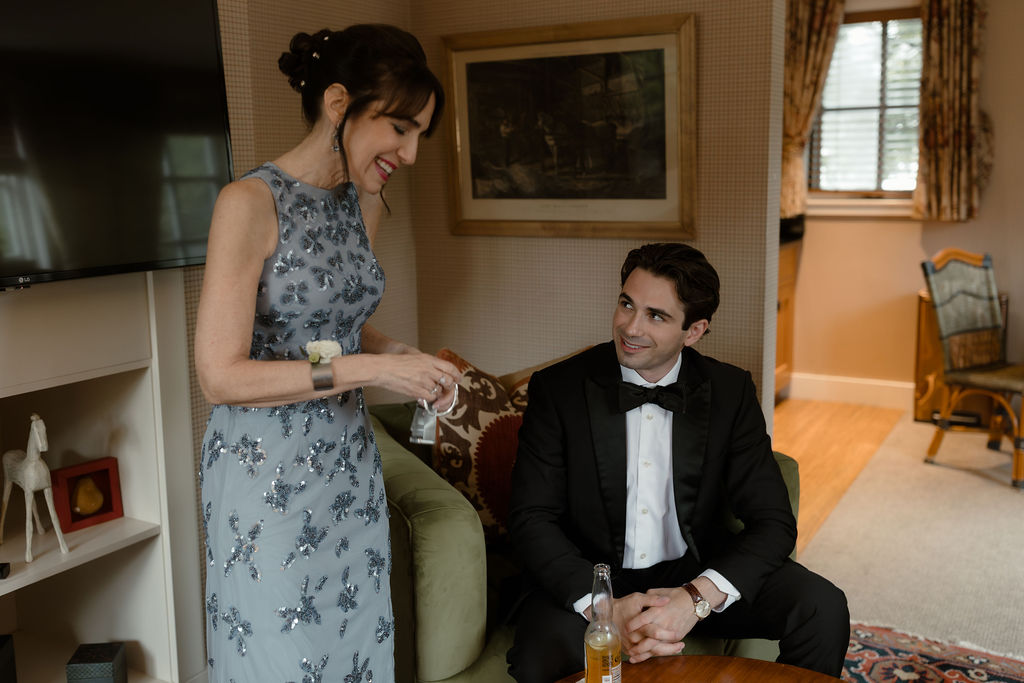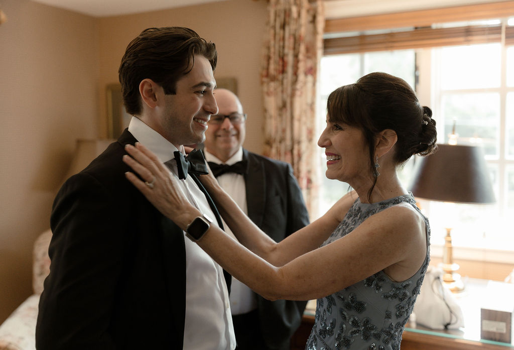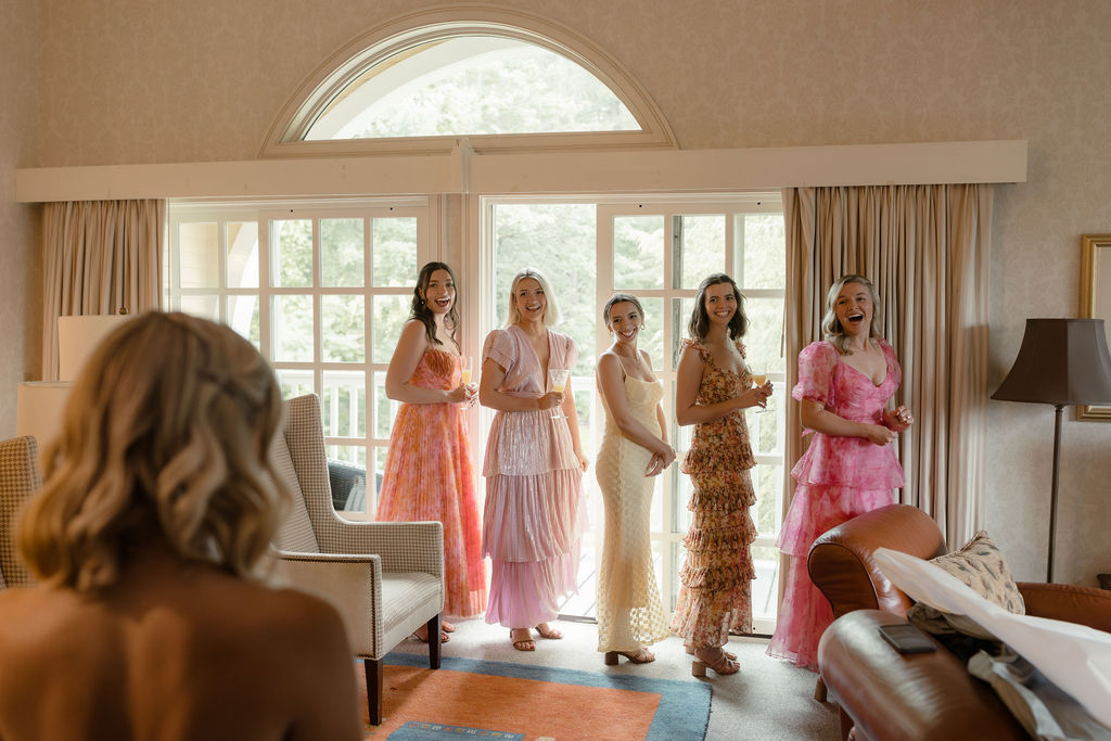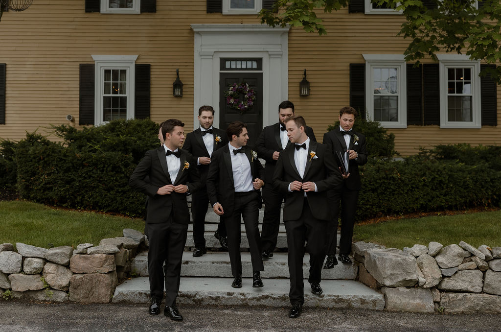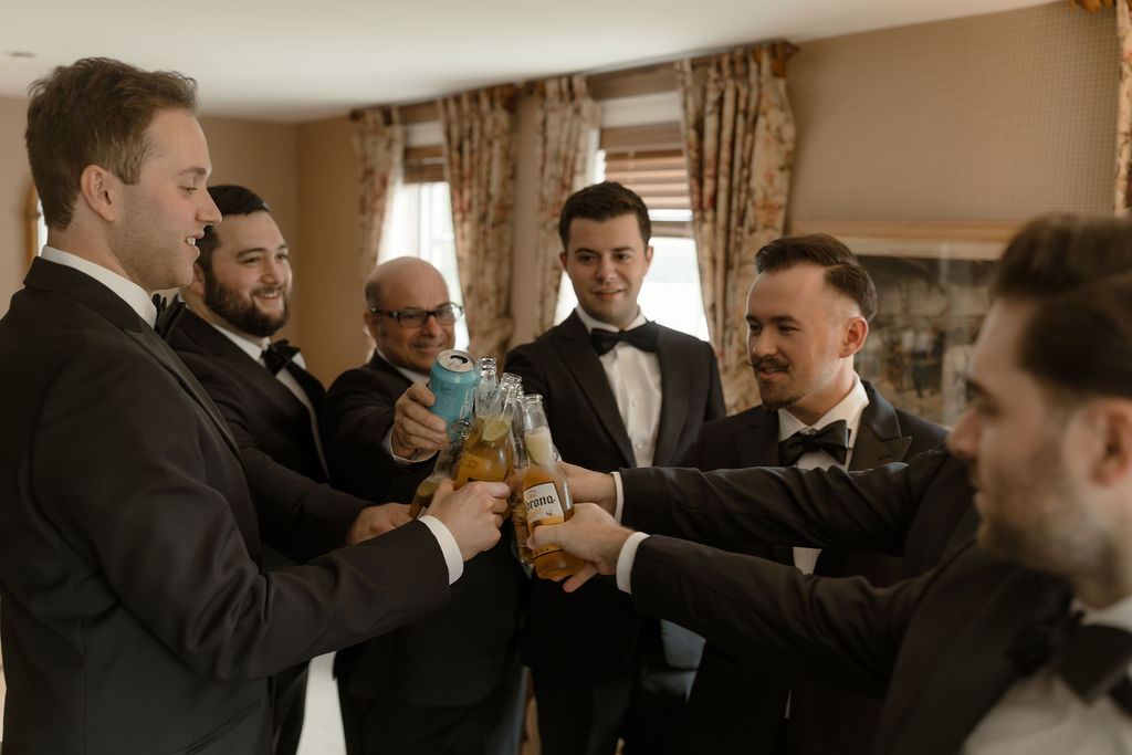 Kalli and Harry both got ready on-site at Bedford Village Inn — but on different sides of the venue. While I was with Kalli and her bridesmaids, photographing all the morning excitement, Kirsten was with Harry and the guys — documenting laughter, cufflinks, and a few pre-ceremony toasts.